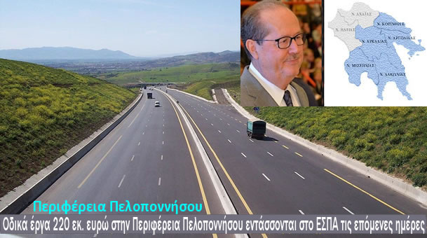 Οδικά έργα 220 εκ. ευρώ στην Περιφέρεια Πελοποννήσου εντάσσονται στο ΕΣΠΑ τις επόμενες ημέρες