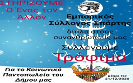 Το Δ.Σ και τα μέλη του Εμπορικού Συλλόγου Σπάρτης αυτές τις Άγιες μέρες των Χριστουγέννων συλλέγουν τρόφιμα μακράς διάρκειας για το κοινωνικό παντοπωλείο του Δήμου μας.