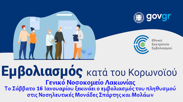 Γενικό Νοσοκομείο Λακωνίας : Tο Σάββατο 16 Ιανουαρίου 2021 ξεκινάει ο εμβολιασμός του πληθυσμού στις Νοσηλευτικές Μονάδες Σπάρτης και Μολάων