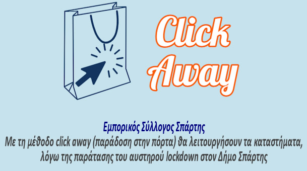 Τα καταστήματα στην περιοχή μας θα λειτουργήσουν με τη μέθοδο click away (παράδοση στην πόρτα) όπως λειτουργήσαμε και στις γιορτές.