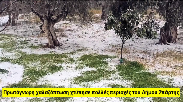 Πρωτόγνωρη χαλαζόπτωση χτύπησε πολλές περιοχές του Δήμου Σπάρτης την Τρίτη 23 Μαρτίου 202.