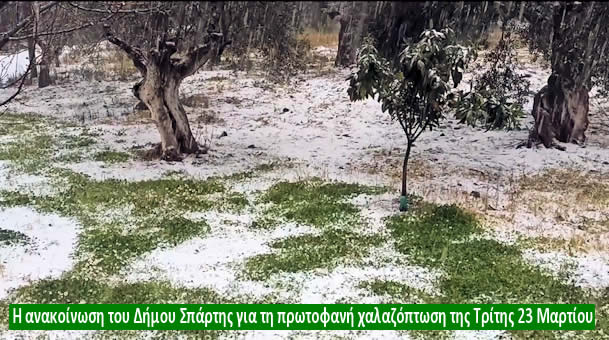Η ανακοίνωση του Δήμου Σπάρτης για τη πρωτοφανή χαλαζόπτωση της Τρίτης 23 Μαρτίου