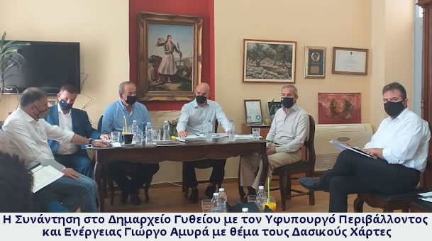 Το μεγάλο θέμα με τους Δασικούς Χάρτες ήταν το αντικείμενο σύσκεψης που πραγματοποιήθηκε την Παρασκευή 7/5/2021 στο δημαρχείο Γυθείου με την παρουσία του Υφυπουργού Ενέργειας & Περιβάλλοντος κ. Γιώργου Αμυρά.