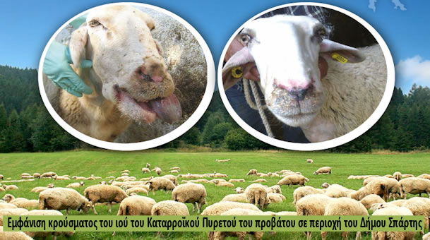 Λόγω εμφάνιση κρούσματος του ιού του Καταρροϊκού Πυρετού του προβάτου σε περιοχή του Δήμου Σπάρτης σας ενημερώνουμε για τα ακόλουθα: