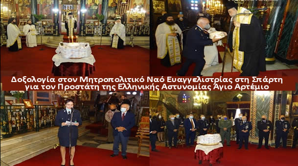 Δοξολογία στον Μητροπολιτικό Ναό Ευαγγελιστρίας στη Σπάρτη για τον Προστάτη της Ελληνικής Αστυνομίας Άγιο Αρτέμιο