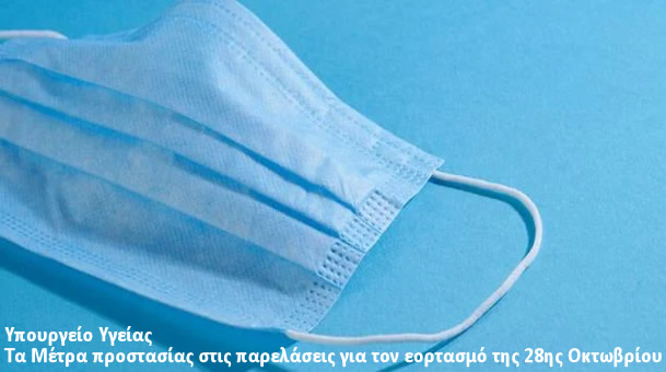 Αναφορικά με τα μέτρα προστασίας που θα πρέπει να τηρηθούν στις παρελάσεις για τον εορτασμό της Εθνικής Επετείου της 28ης Οκτωβρίου, το Υπουργείο Υγείας διευκρινίζει ότι σύμφωνα με τα υγειονομικά πρωτόκολλα, η χρήση μάσκας είναι υποχρεωτική και σε εξωτερικούς χώρους, όπου υπάρχει συνάθροιση και συνωστισμός.