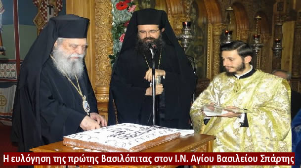 Η ευλόγηση της πρώτης Βασιλόπιτας στον Ι.Ν. Αγίου Βασιλείου Σπάρτης