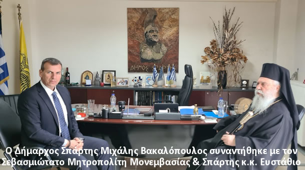 O Δήμαρχος Σπάρτης Μιχάλης Βακαλόπουλος συναντήθηκε με τον Σεβασμιώτατο Μητροπολίτη Μονεμβασίας & Σπάρτης κ.κ. Ευστάθιο