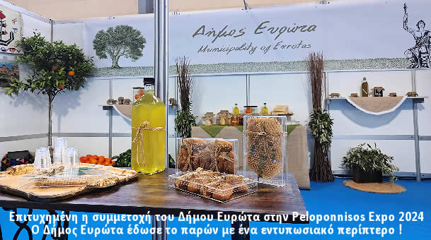 Επιτυχημένη η συμμετοχή του Δήμου Ευρώτα στην Peloponnisos Expo 2024. Ο Δήμος Ευρώτα έδωσε το παρών με ένα εντυπωσιακό περίπτερο.