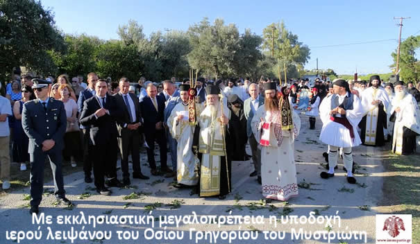 Με κατάνυξη, εκκλησιαστική μεγαλοπρέπεια και πάνδημη συμμετοχή η γενέτειρα του Οσίου Γρηγορίου του Μυστριώτη, ο ιστορικός Μυστράς, υποδέχθηκε απότμημα του ιερού λειψάνου του.