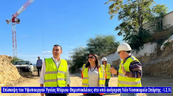 Ο Υφυπουργός Υγείας Μάριος Θεμιστοκλέους πραγματοποίησε επίσκεψη στο υπό ανέγερση Νέο Νοσοκομείο Σπάρτης.