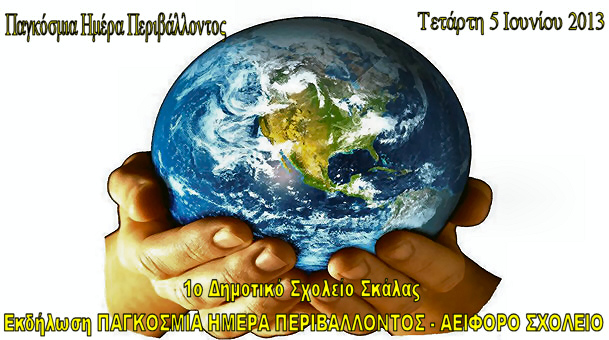 Αφιερωμένη εξ ολοκλήρου στο περιβάλλον θα είναι η 5η Ιουνίου 2013, ημέρα Τετάρτη όπου όλος ο πλανήτης δείχνει την ευαισθησία του και διοργανώνει εορταστικές εκδηλώσεις. Οι μαθητές και ο Σύλλογος Διδασκόντων του 1ου Δημοτικού σχολείου ,πιστοί στην δέσμευσή τους συμμετέχοντας στον Πανελλήνιο Διαγωνισμό του ΑΕΙΦΟΡΟΥ ΣΧΟΛΕΙΟΥ, σας προσκαλούν στην εκδήλωση που διοργανώνουν την Τετάρτη 5 Ιουνίου 2013 στις 19:00 μ.μ. στην αίθουσα εκδηλώσεων του σχολείου με ανάλογη θεματολογία.