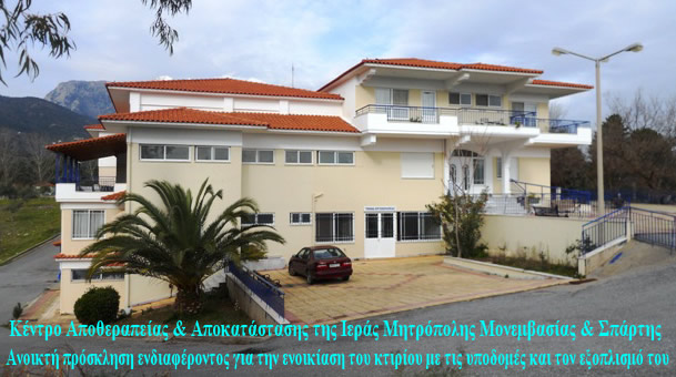 Το Διοικητικό Συμβούλιο του Φιλανθρωπικού μη Κερδοσκοπικού Ιδρύματος της Ιεράς Μητρόπολης Μονεμβασίας και Σπάρτης με την επωνυμία: ‘’Κέντρο Αποθεραπείας και Αποκατάστασης Ημερήσιας Νοσηλείας’’ σε συνεδρίασή του την 27η Σεπτεμβρίου 2013 διαπίστωσε με απογοήτευση, ότι οι αιτίες που οδήγησαν στην εξάμηνη αναστολή λειτουργίας παραμένουν. Ως εκ τούτου δεν υπάρχει δυνατότητα επαναλειτουργίας του Ιδρύματος στην παρούσα φάση.