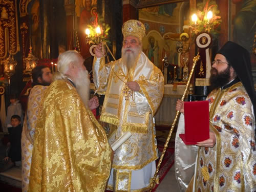 Με την ολοκλήρωση της Χριστουγεννιάτικης Αρχιερατικής Θείας Λειτουργίας, στο Μητροπολιτικό Ναό του Ευαγγελισμού της Θεοτόκου στη Σπάρτη, ο Σεβ. Μητροπολίτης Μονεμβασίας και Σπάρτης κ.κ. Ευστάθιος προχώρησε, μέσα σε κλίμα συναισθηματικής φόρτισης, στην απονομή τιμητικού επαίνου στο Πρωτοσύγκελλο της Ιεράς Μητροπόλεως π. Γεώργιο Μπλάθρα, για τα πενήντα χρόνια διακονίας του ως ιερέας, που συμπληρώθηκαν την 1η Δεκεμβρίου 2013.