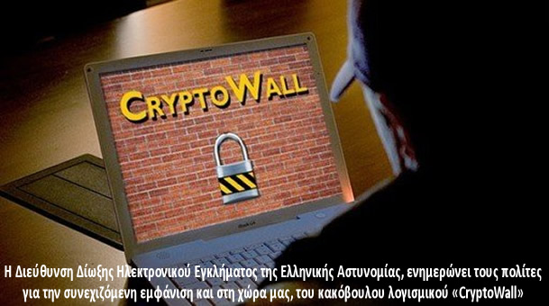 Η Διεύθυνση Δίωξης Ηλεκτρονικού Εγκλήματος της Ελληνικής Αστυνομίας, ενημερώνει τους πολίτες για την συνεχιζόμενη εμφάνιση και στη χώρα μας, του κακόβουλου λογισμικού «CryptoWall».