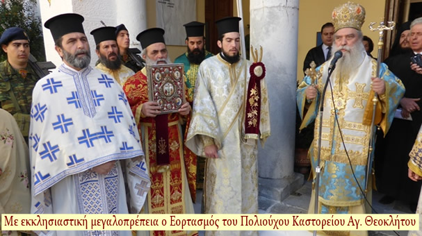 Την Τρίτη 1η Δεκεμβρίου 2015 το Καστόρι εόρτασε με εκκλησιαστική μεγαλοπρέπεια τον Πολιούχο του Άγιο Θεόκλητο τον Λακεδαιμόνιο και στον φερώνυμο Καθεδρικό Ναό τελέσθηκε Αρχιερατική Θεία Λειτουργία προεξάρχοντος του Σεβασμιωτάτου Μητροπολίτη μας κ. Ευσταθίου.