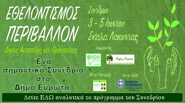 Ένα πολύ σημαντικό Συνέδριο στο Δήμο Ευρώτα με τίτλο «Εθελοντισμός & Περιβάλλον - Δομές Ανάπτυξης και Προστασίας»