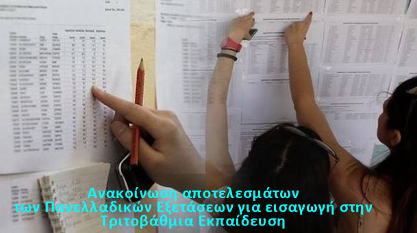 Ανακοίνωση αποτελεσμάτων των πανελλαδικών εξετάσεων για εισαγωγή στην Τριτοβάθμια Εκπαίδευση