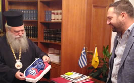 Ο Σεβασμιώτατος ευχήθηκε στην ομάδα και στο ποδοσφαιρικό τμήμα υγεία, δύναμη και ευλογία από τον Θεό ενώ παρέλαβε την κάρτα διαρκείας του για τη σεζόν 2016-2017 καθώς επίσης και ένα αναμνηστικό λάβαρο της ομάδας.