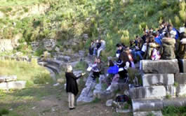 Με τη βοήθεια των ενημερωτικών πινακίδων και υλικού της Εφορείας Αρχαιοτήτων Λακωνίας, οι μαθητές εντυπωσιάστηκαν από τις αναπαραστάσεις των αρχαίων κτισμάτων, ενώ ενδιαφέρον έδειξαν και για το κυκλοτερές οικοδόμημα, το οποίο έχει αναδειχθεί μετά τις πρόσφατες εργασίες στον αρχαιολογικό χώρο.