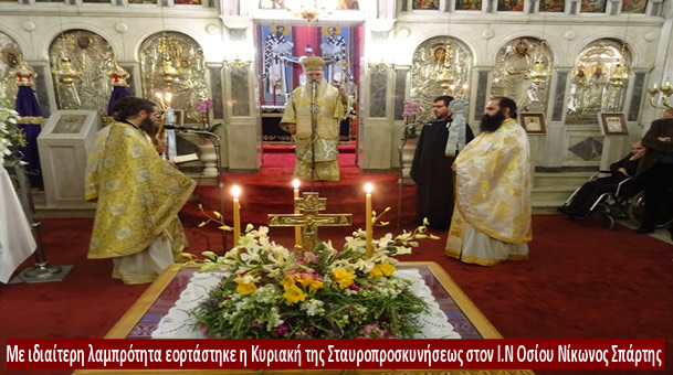 Με ιδιαίτερη λαμπρότητα εορτάστηκε η Κυριακή της Σταυροπροσκυνήσεως στον Ι.Ν Οσίου Νίκωνος Σπάρτης