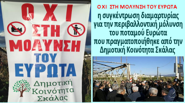 Συγκέντρωση διαμαρτυρίας για τη μόλυνση του ποταμού Ευρώτα πραγματοποιήθηκε το Σάββατο 17/2/2018 το μεσημέρι στη γέφυρα του Ευρώτα στη Σκάλα.
