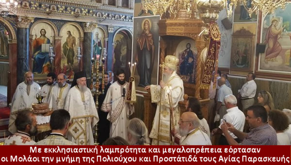 Με εκκλησιαστική λαμπρότητα και μεγαλοπρέπεια εόρτασαν οι Μολάοι την μνήμη της Πολιούχου και Προστάτιδά τους Αγίας Παρασκευής.