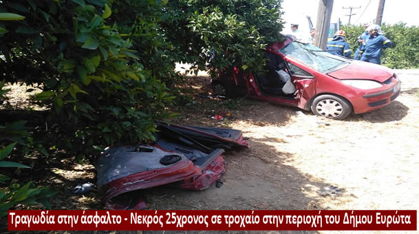 Στις 9.7.2019 το πρωί, σε τοπική κοινότητα του Δήμου Ευρώτα Λακωνίας, Ι.Χ. επιβατικό αυτοκίνητο που οδηγούσε 25χρονος, εξετράπη της πορείας του και προσέκρουσε σε στύλο, με αποτέλεσμα τον θανάσιμο τραυματισμό του οδηγού.
