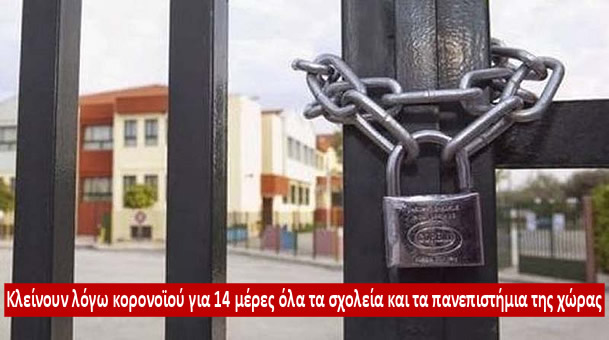 Κλείνουν λόγω κορονοϊού για 14 μέρες όλα τα σχολεία και τα πανεπιστήμια της χώρας